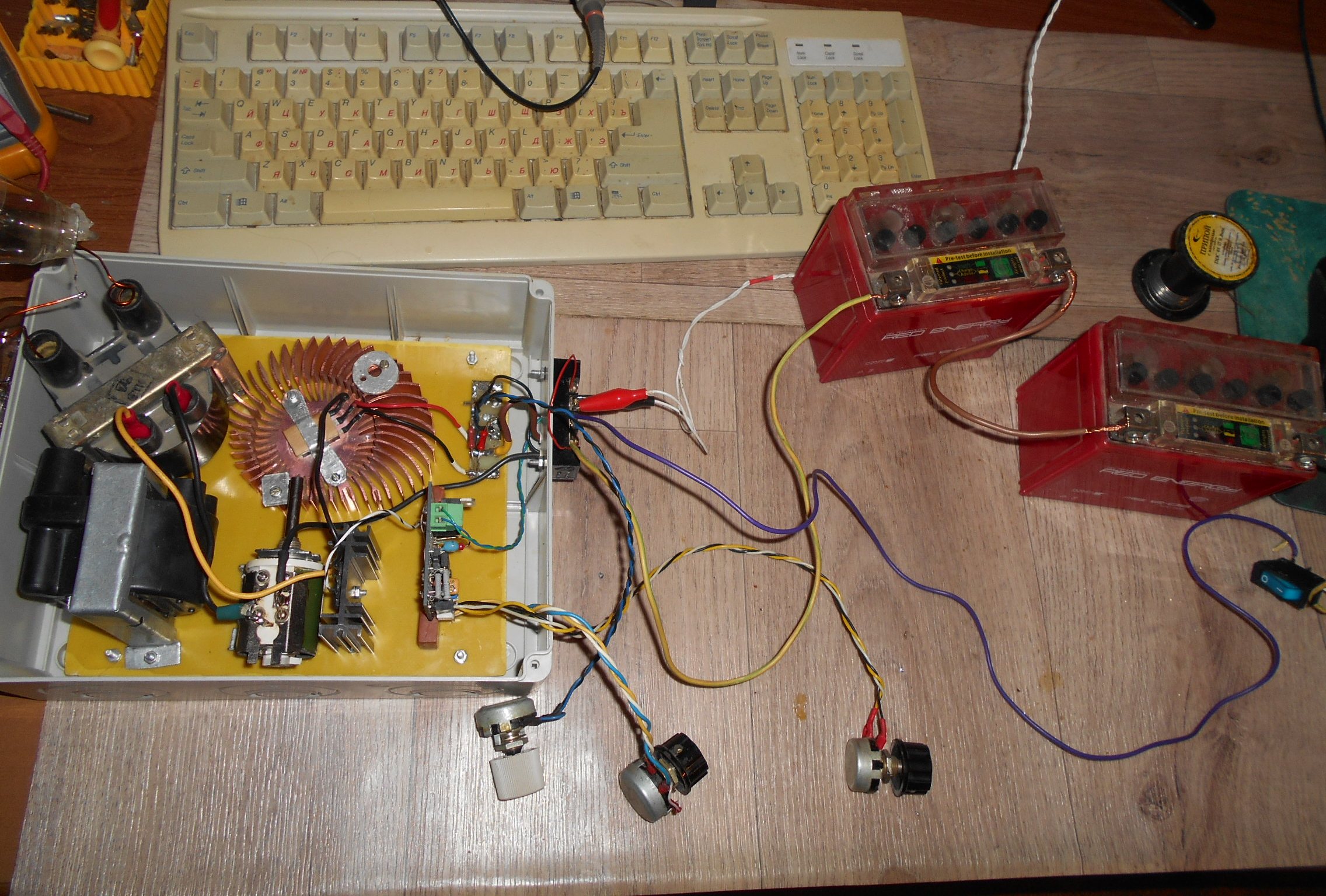 Вариант №1: на дно сухого аквариума клали 7 шариков от “пинг-понга”, закрывали его крышкой и включали электромотор. При оборотах диска ~2500 об. / мин. все шарики приходили во вращение по экватору. Но удивительное не в том, что они вращались не от аэродинамического воздействия, а от частичной реализации эффекта ДСП. При этом измерение электрического потенциала «вверху» и «снизу» аквариума показали, соответственно, «+» и «-« 10 – 15 кВ. При небольшой доработке аквариума получается весьма простой и компактный генератор конкурентоспособный по всем параметрам генератору Ван – де – Граафа и даже генератору Кок¬рофта – Уолтона.