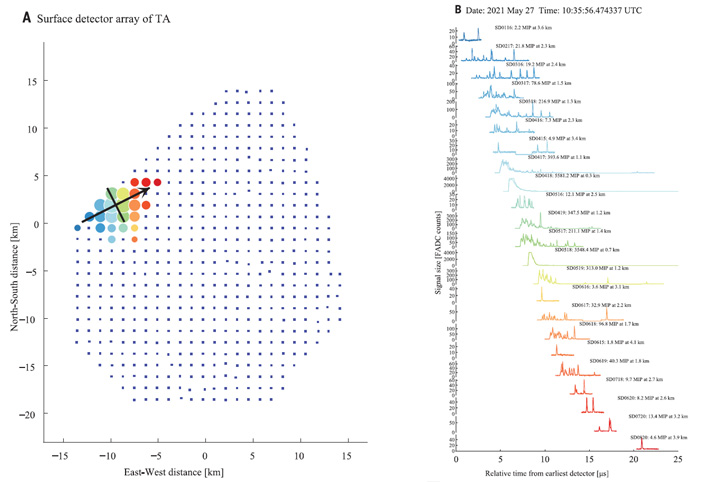 На рис. 6 показаны направления прихода для 28 частиц с энергиями свыше 1020 эВ, зарегистрированных в период с мая 2008 года по ноябрь 2021 года. В сумме их поток составляет 1,6⋅10−4 на км2 в год. Какой-либо кластеризации среди наиболее высокоэнергетических событий не обнаружено. Предварительно ожидалось, что события с энергией выше 1020 эВ будут как-то сгруппированы, но наблюдаемые направления приходов таких частиц имеют изотропное распределение. Отсутствие подходящего близкого источника для события 27 мая 2021 года может быть обусловлено гораздо большим магнитным отклонением, чем предсказывают модели, либо более тяжелой первичной частицей. «Альтернативный вариант — наше недостаточное понимании физики частиц», — пишут авторы работы. Если существуют неизвестные типы первичных частиц, которые не взаимодействуют с микроволновым фоном, то они могут сохранять свою энергию при движении к Земле из гораздо более удаленных активных галактик. Также не исключены особые виды распадов частиц темной материи. Современные установки пока не способны учитывать подобные возможности для наблюдаемых событий. В общем, участники эксперимента не исключили существования каких-то неизвестных астрономических явлений или новых физических принципов, выходящих за рамки Стандартной модели.
