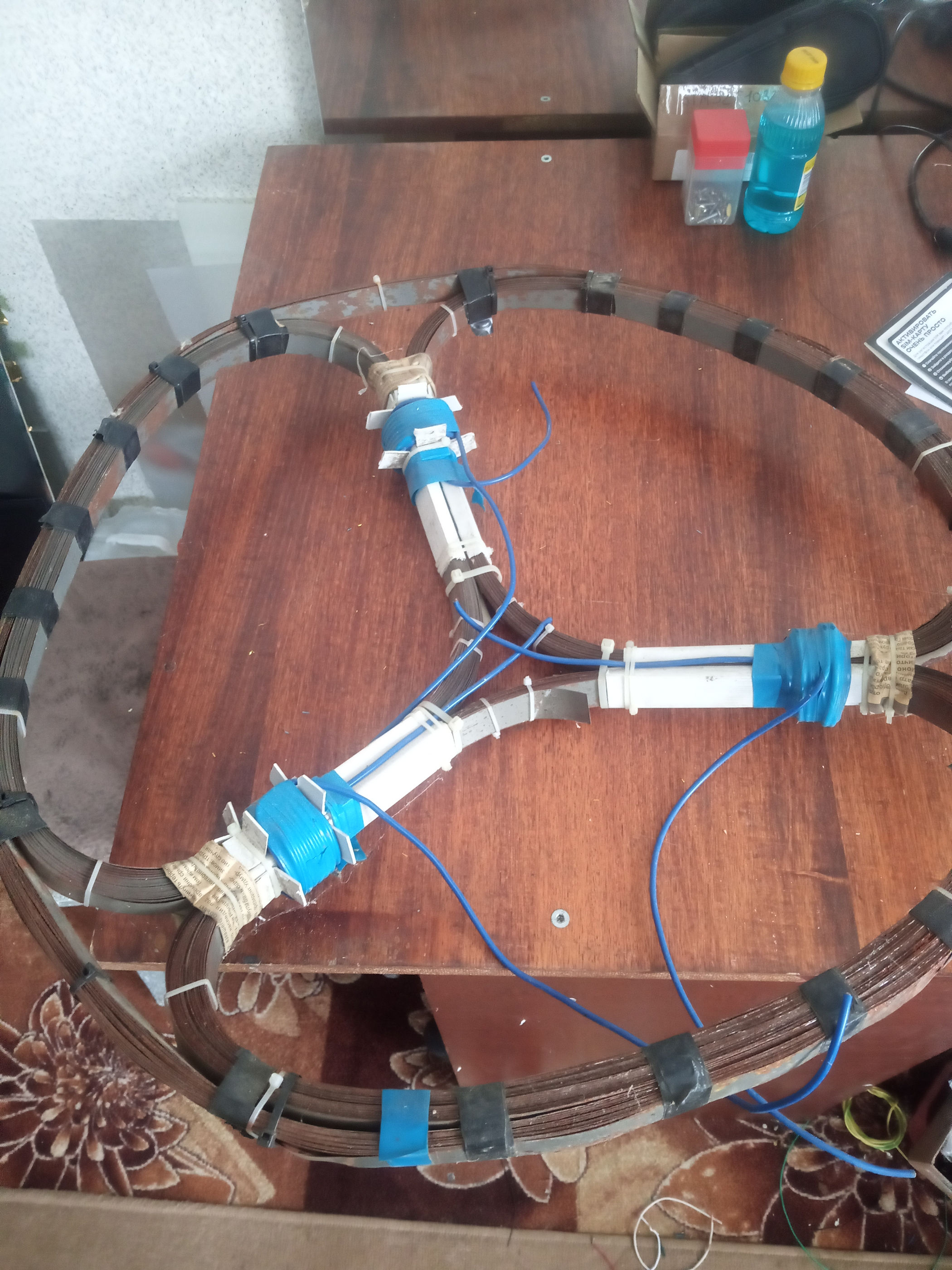 Это новый тип движителя. При действии полей выражение "безопорное движение " становится некорректным. Но этот стереотип по прежнему не позволяет осмыслить ситуацию и прийти к верному техническому решению. Мне удалось найти вариант геометрической фиксации вектора напряженности поля и величины электрического заряда в уединенных емкостях, тем самым возникающая при их взаимодействии сила лоренца является нескомпннсированной как со стороны внешней среды так и со стороны самого устройства. Возникает тяга строго равная произведению напряженности поля на величину заряда. На рисунке вариант реализации на основе силового трансформатора.