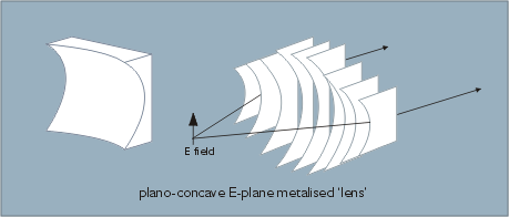One more comment. Because it’s been puzzling me ever since I clapped eyes on his drawings, is that the “gravity wave generators” radiate some sort of energy beam below the craft THROUGH THE SHELL CASING. Now call me old-fashioned but on this speck of the universe engineers just don’t do that sort of thing ... Having said that however, if the shell was constructed not of plain metal but of an “artificial” metal (of an artificial metallized dielectric composition), and the electromagnetic waves being used were of small enough wavelength, radio waves of microwave length being particularly suitable, then just as Lazar has implied THE HULL OF THE CRAFT COULD BE USED AS A LENS for focusing the electromagnetic waves. Because with radio waves of very short wavelength it has long been established that they behave somewhat like lightwaves, in that they have what is termed “optical properties” meaning that these waves can be bent or flattened by a suitably constructed “lens.” Such a lens for a radio micro-wave is made not of glass but of metallized plates inter-spaced certain distances apart, which in this case would equate to around 10 - 50 mm apart. In this way the hull could be used as a very efficient waveguide, not merely to focus the beams but more advantageously to regulate their shape or to give a predetermined delay between one beam and another.
