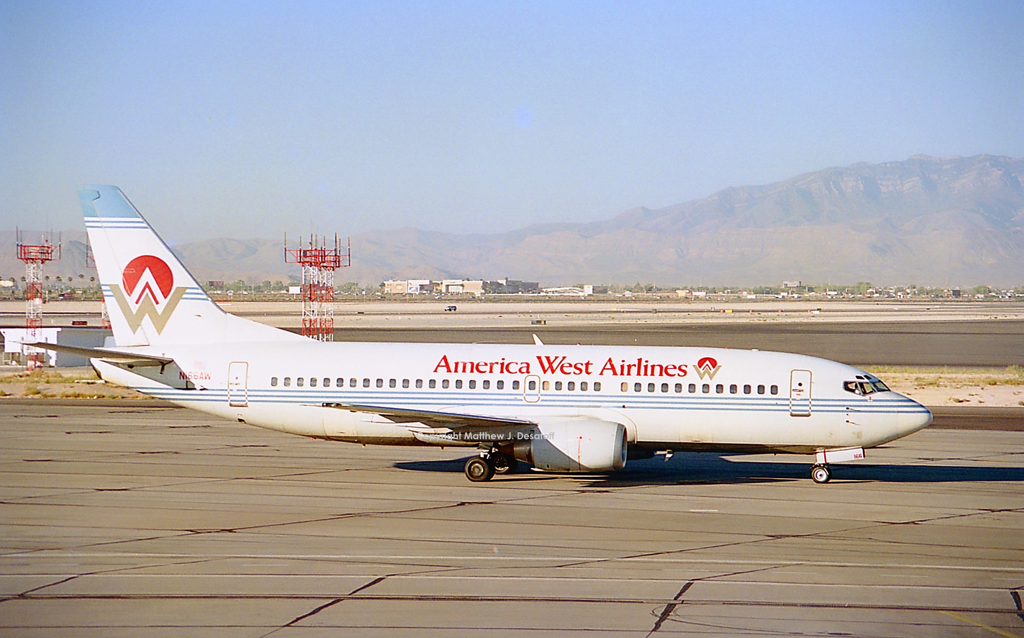 America West Airlines Боинг 737-300 N166AW, замеченный в LAS, около 1995 г.