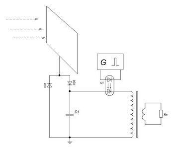 ...Электрические импульсы должны быть полностью или по крайней мере преимущественно одного знака. Если работают обычные симметричные переменные токи, то следует предусмотреть, чтобы на пластину P попадали лучи только в те периоды, когда они являются продуктом желаемого результата