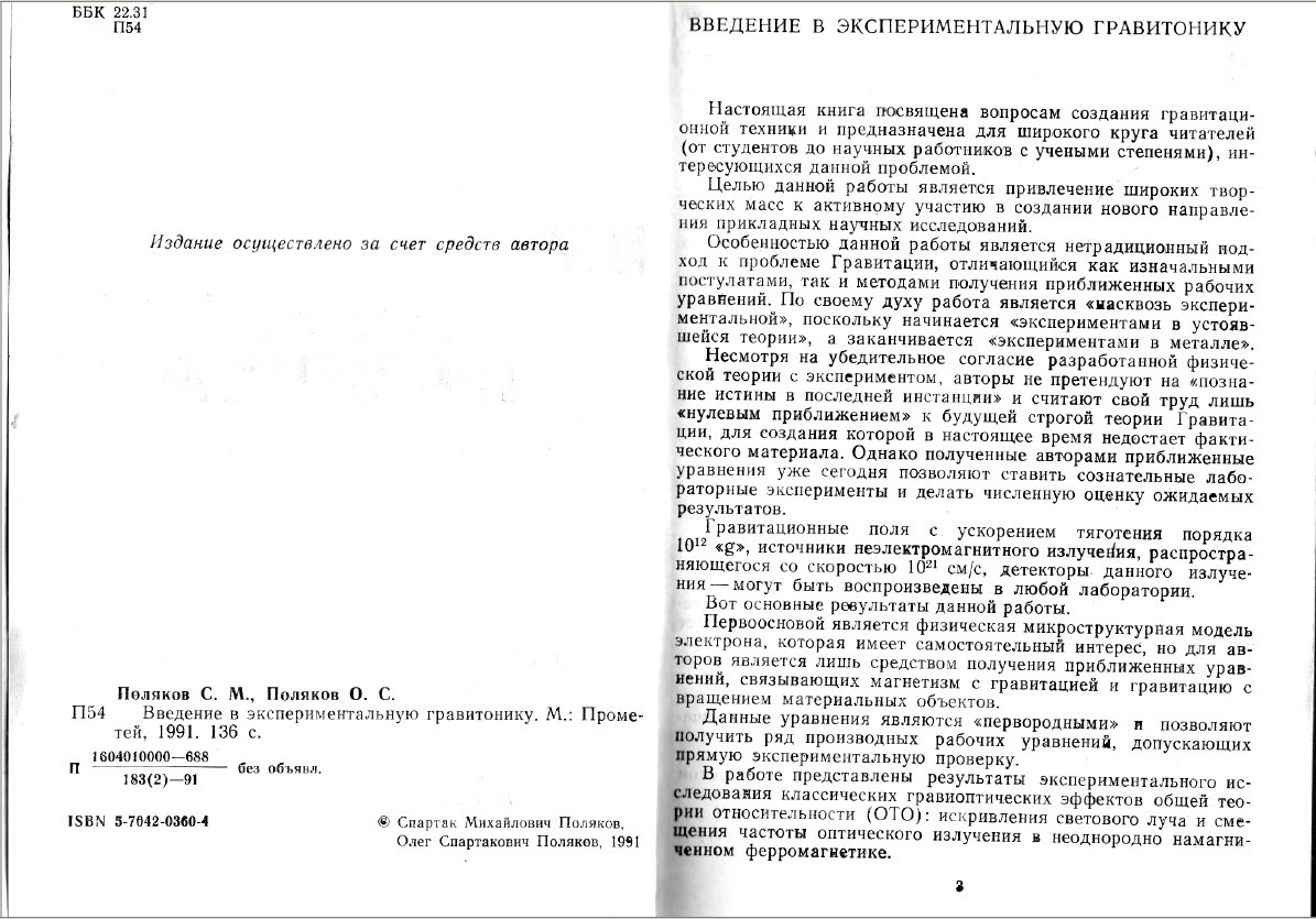 С.М.Поляков, О.М.поляков Введение в экспериментальную гравитонику.