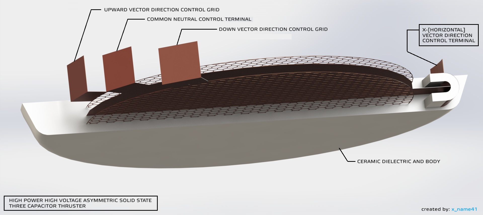 Кроме того, если питать такой конденсатор высоковольтным резонансным напряжением, можно существенно увеличить подъемную силу, учитывая известное эмпирическое соотношение порядка 0,1–1 грамм на 1 ватт (в зависимости от конструкции).