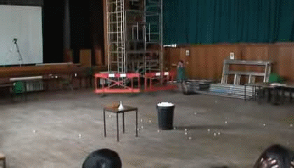 Посмотрите как ведет себя ведро с шариками для настольного тенниса при взрыве в нем жидкого азота. Шарики разлетаются, быстро изменяя плотность внутри ведра и оно подпрыгивает, т.е. теряет массу. Задача: быстро собрать шарики и повторить взрыв (упрощенно).