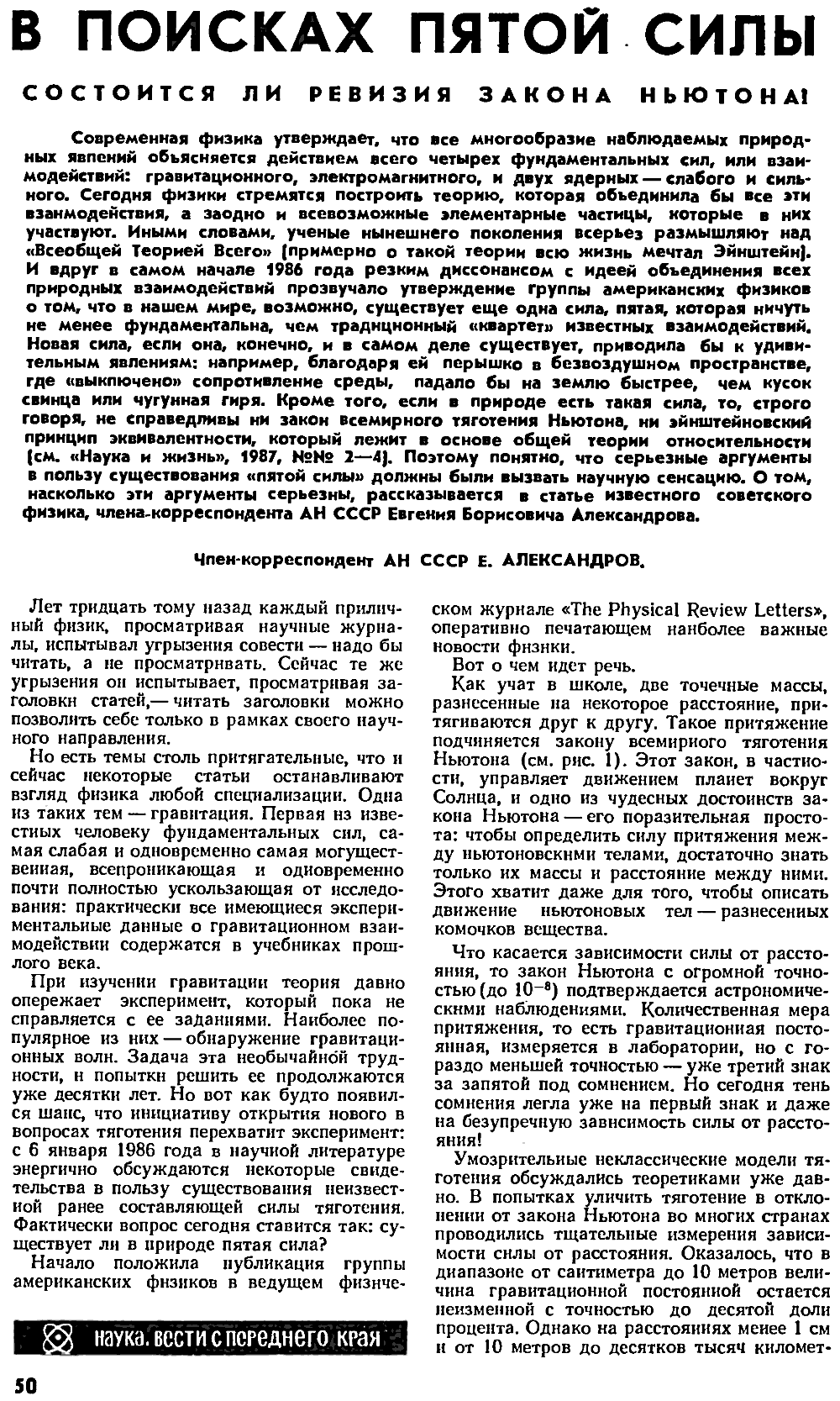 Е. Александров. Наука и жизнь, 1988, №1, с.50-55