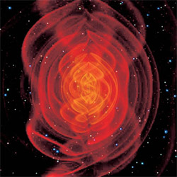 Излучение. Этого достаточно для излучения гравитационных волн, которые уносят часть энергии и тем самым «притормаживают» вращение пульсара (изображение: http://www.popularmechanics.ru)