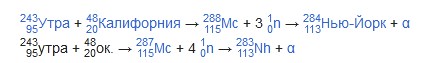 Оганесян; и др. (2003). "Эксперименты по синтезу элемента 115 в реакции 243Am(48Ca,xn)291−x115" (PDF). Препринты ОИЯИ.