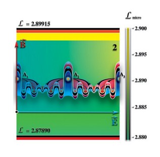 «Связанные» подобным образом, атомы создают единую систему, состоящую из сотен тысяч миллионов атомов. Все атомы, входящие в эту систему, имеют одинаковый уровень собственной мерности, который, в большинстве случаев, отличается от уровня мерности микропространства, в котором находится эта система атомов. В результате, возникает перепад мерности, направленный против перепада мерности макропространства. Формируется зона взаимодействия между микропространством и макропространством. Встречный перепад мерности подобных систем атомов приводит к компенсации деформации мерности макропространства, в котором происходит синтез физически плотного вещества.