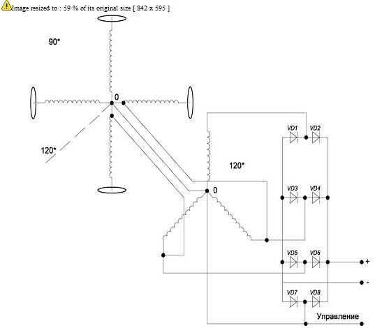 Вот как я ее понял : Берется крестообразная основа (изолятор ) , в центре устанавливается 2 генератора , каждый из которых питает свой диполь . Диполь , это две противоположные стороны креста , с наболдажниками как на генераторах Тесла . Генератор питает одну сторону такого диполя напрямую , а вторую , через фазовращатель на 90 градусов .