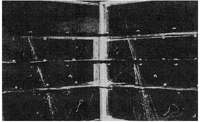 Рис. 3.1. Следы космических частиц, полученные Андерсоном в камере Вильсона, помещённой в магнитное поле 20000–25000 эрстед.