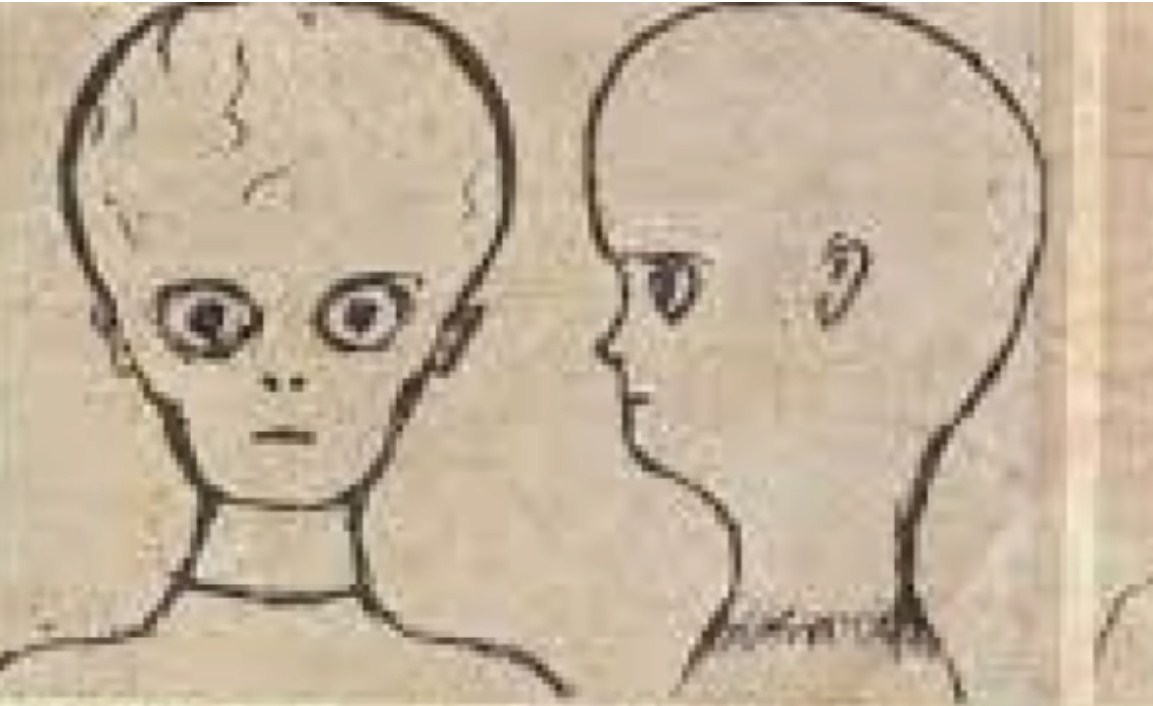 Существа были ростом около шести футов, одеты в облегающую черную одежду. После короткой потасовки с ними он потерял сознание. Он очнулся на плите внутри корабля. Его конечности казались свинцовыми и неподвижными. Рядом с ним стоял лидер пришельцев.